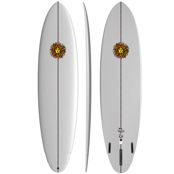 Description: The Old School screams classic — just like its name. This versatile, innovative board blends a timeless egg-inspired outline with modern performance features, making it a reliable choice across a wide range of conditions. A streamlined low-entry rocker and well-distributed foam make for effortless paddling and glide on smaller days, while the double-barrel concave and tucked-in tail deliver smooth, controlled turns when the surf picks up. The 60/40 rails through the midsection transition to sharper rails up front, enhancing responsiveness and maneuverability for quick, precise direction changes. Ride it as a twin fin for a loose, lively feel or add a small stabilizer for extra drive and control. The Old School gives you the option to run it as a single n or 2+1 setup, making it an adaptable, go-to board for nearly any lineup. Simple, stylish, and built to perform — it’s a board that gets the job done from waist-high cruisers to clean, overhead walls.