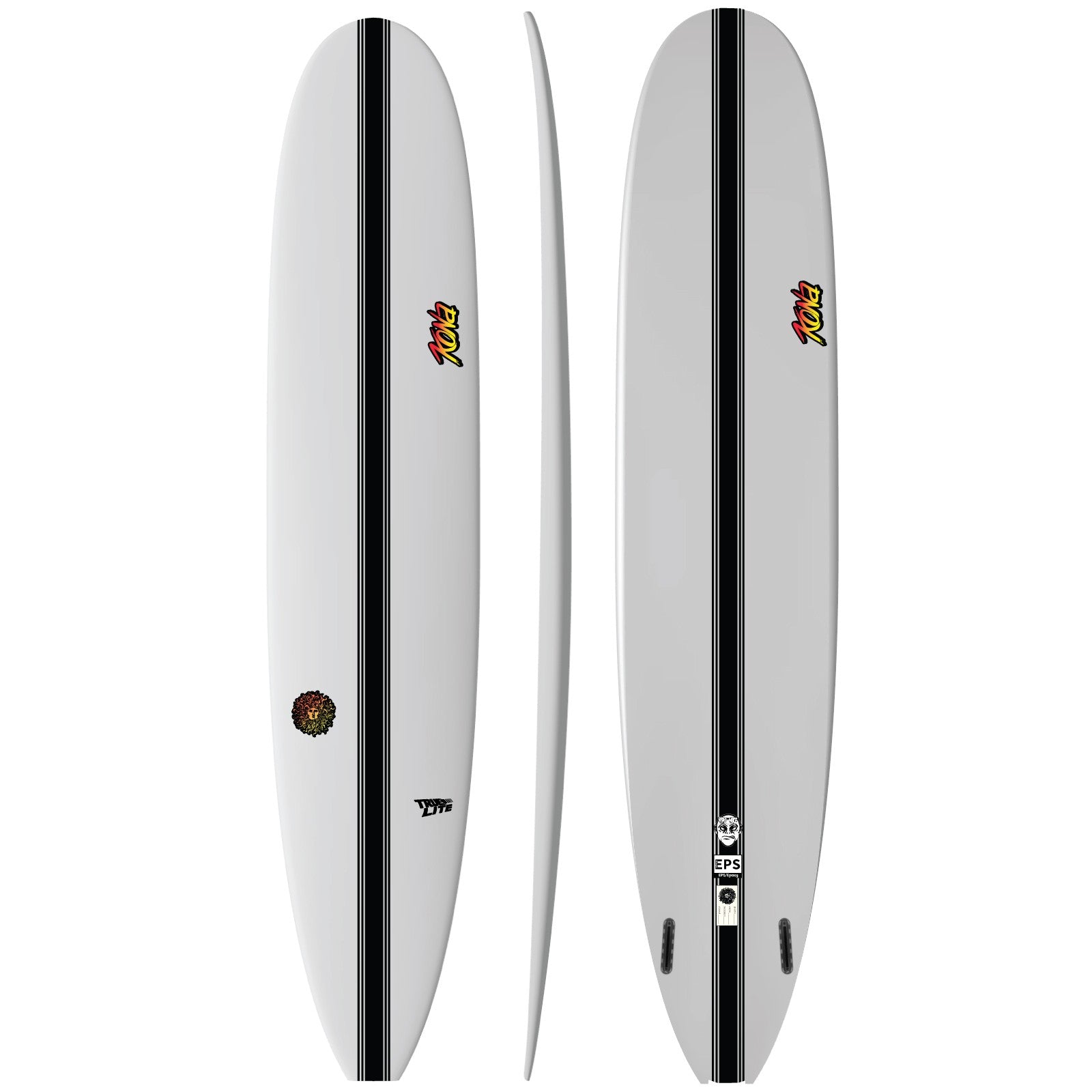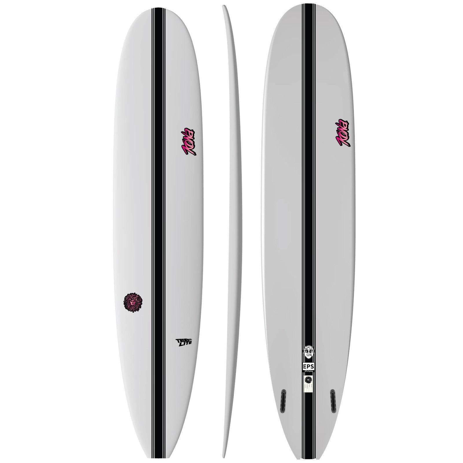 Mike Sciarra's Hyper Mike longboard masterfully combines traditional longboard aesthetics with modern design elements, making it a highly versatile, high performance hybrid suitable for a wide range of conditions from mushy waves to shoulder high surf. Its increased tail rocker allows for sharp, agile turns, while the 2+1 fin setup provides stability and control. The rounded square tail offers looseness and pivotability for smooth, responsive maneuvers, complemented by nose and tail curves, single to double concave bottom contours for speed and planing, and vee through the tail for fluid transitions. The tapered tail strikes an ideal balance between speed and control, enabling effortless rail to rail transitions and lively responsiveness. Overall, this modern longboard delivers a perfect blend of classic style and contemporary performance, making it an excellent choice across diverse conditions truly a versatile, high-performance longboard that will elevate your surf game.